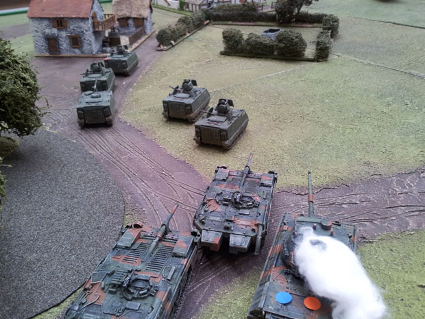 With his flank now cleared the NATO commander pushed the German brigade forward with the Panzer Grenadiers in the lead but it was late in day.
