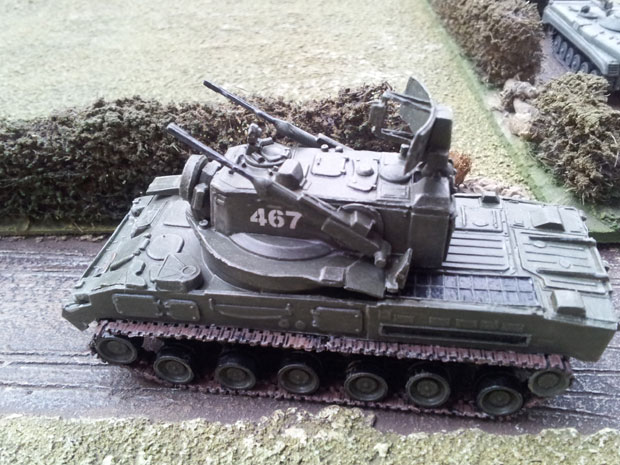 Further north a T62 tank battalion and an armoured infantry battalion in wheeled BTR 60s deployed behind a hill line to seal the northern flank. To the east the roads were full of the remaining two tank battalions and their supporting infantry, a juicy target for NATO airpower. ATGW equipped Lynx helicopters appeared on cue and tried to knock out the mobile PPR flak weapons to give themselves a clear run at the remaining enemy armour. The flak proved highly resilient and the NATO helicopters had to expend all their missiles before eliminating it.