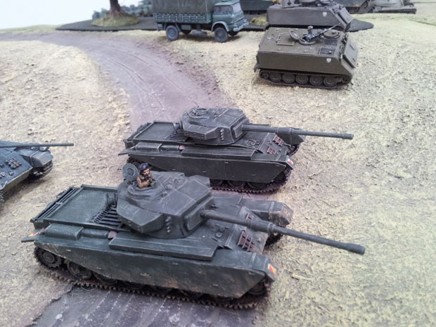 The forces pitted against each other were a mixed NATO force consisting of British, German and French armoured brigades, making an improvised NATO armoured division. This was supported by a “Free Polish” armoured division equipped with American armour and some up gunned British supplied Centurions. A British Air Mobile Brigade completed the western forces.