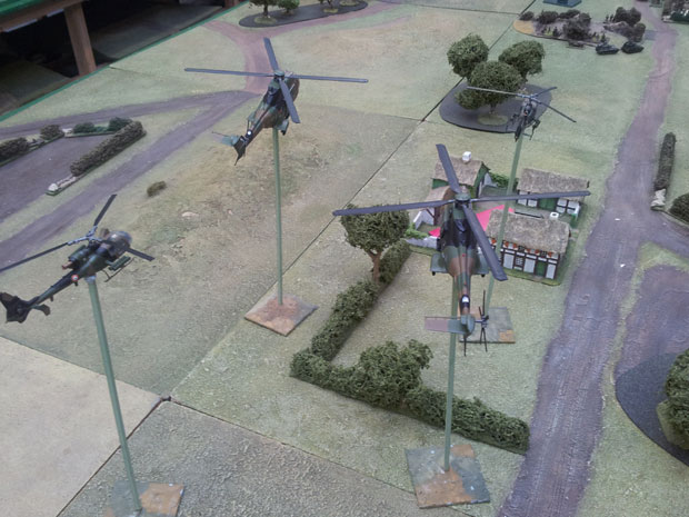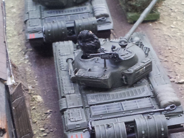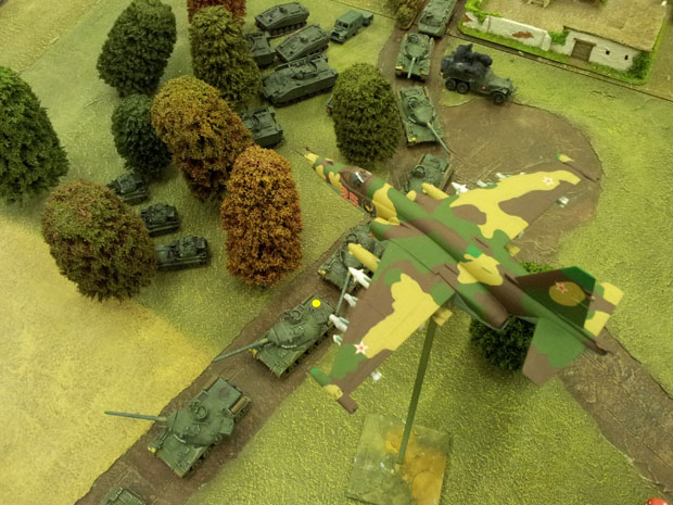 Being inveterate kit builders we began to look at modern tanks etc and one thing lead to another so we decided to stretch the “Poland idea” a bit further, into the 1970s/80s. 1/76th and 1/72nd modern kits were purchased and over a year substantial forces were built up (approx 200 tanks and APCs and many planes and helicopters). Using the fictional background a more varied mix of tanks and aircraft etc can be used, great to get those keen kit builders involved!
