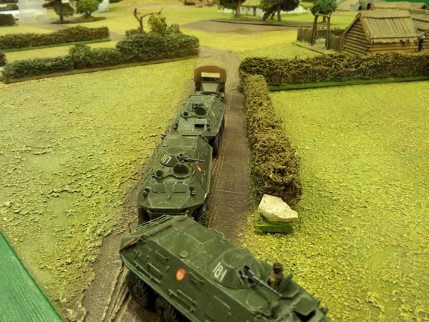 On the southern table PPR reinforcements arrived in the guise of the 23rd Motor Rifle Division, this was a standard modern regular PPR formation, it’s three battalion tank regiment was equipped throughout with T72 tanks and two of it’s three infantry battalions mounted in BTR60 APCs with the remaining one equipped with modern BMP 1 tracked APCs.