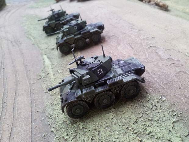 The forces were similar to those defending the southern frontier but the tanks were T55’s. The Free Polish commander led with a reservist battalion of M48 tanks and an armoured car regiment equipped with Saladin armoured cars and a few Sheridan light tanks.