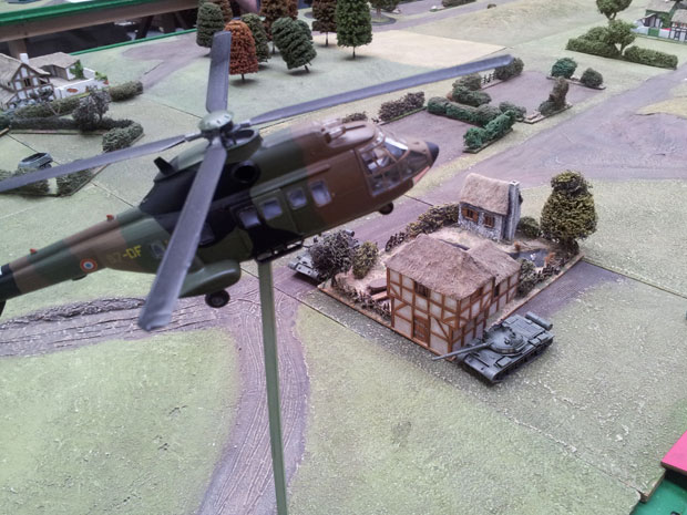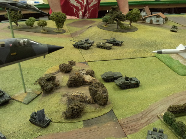 Just as the PPR tanks were about to exploit this advantage two extremely successful bombing runs by first a RAF Buccaneer and then a German Alphajet took place which immobilised some of the PPR tanks and inflicted heavy casualties on the PPR infantry supporting the attack.