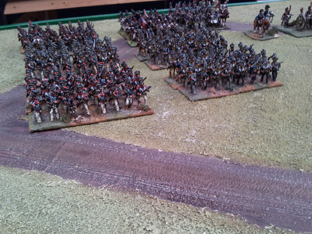 Back in the South the Russian cavalry corps covering the far eastern flank had wound it’s way across the tributary of the Seine and was now engaging the lead elements of Grouchy’s Cavalry Corps, the French Dragoon Regiments and Cuirassier crashing into the Russian Kuirassier and Uhlans.