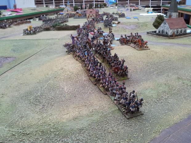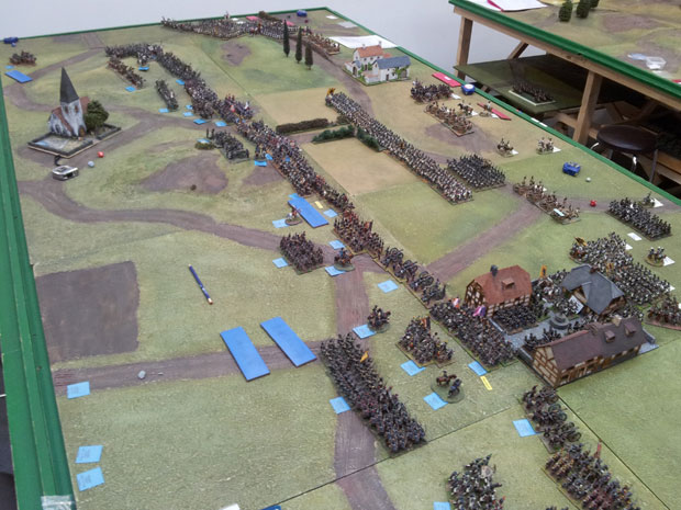 The game saw the French holding onto their left flank desperately while on the French right flank, there was a huge push across the river in order to turn the Austrian left flank.