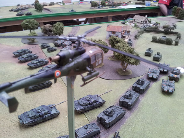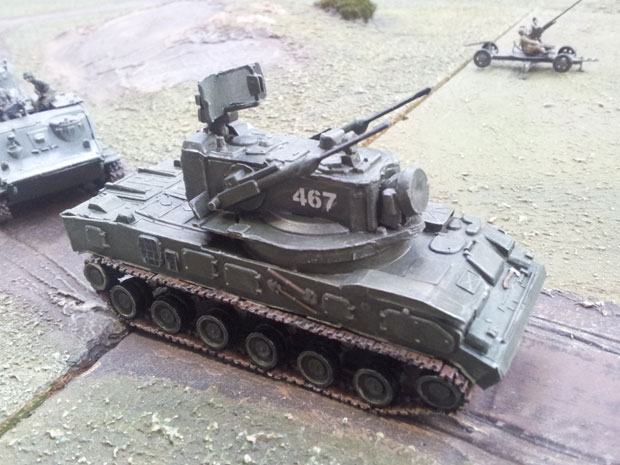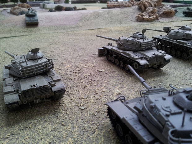Last weekend I had a bunch of Guys turn up to play “Modern” they used an adaptation of the Rapid Fire rule set, which was a great deal of fun! Over the course of the day, (they only played Sunday) they managed over 20 turns and a good deal of action. This ranged from the initial insertion of the airborne troops to destroy the two missile bunkers (to allow the air arm to support the attack), to tank to tank action and bayonet charges!