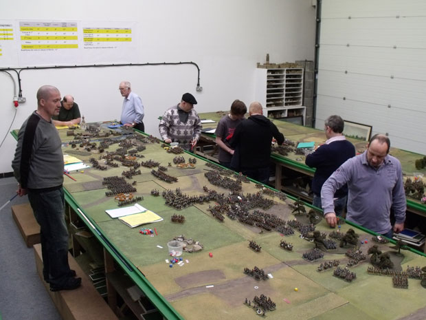 At this point, at 17.40 and after fifteen turns it was decided that the Russians had been beaten! So we put the figures back on the trays, re-wrote the tiles and we’ll start turn two again tomorrow having changed the sides around a little bit. If it’s as much fun as today, it’ll be great!