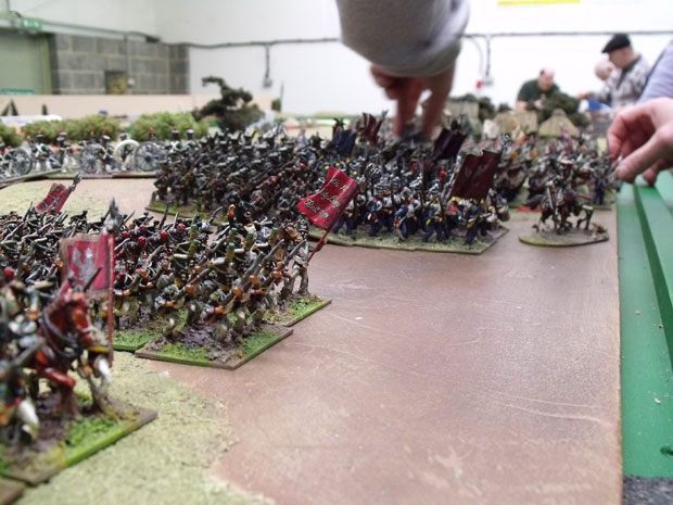 Along the whole front the Russian guns began to reap havoc among the cavalry regiments advancing across the plain. The Russian cavalry were held in reserve right up until they were needed, to maximise the casualties from the guns. The twelve Pounder battery in the redoubt blew seven casualties off a Wurzburg battalion in turn one and a further eleven in turn two.