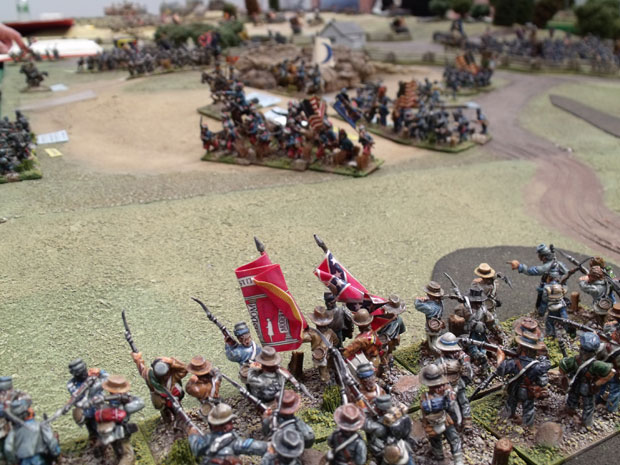 Pickett’s division was knocked back but Rodes division made some headway, faltering just at the top of the ridge.