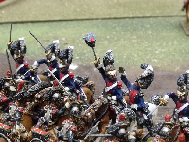 First action, no small fete, French Cuirassier, looks like they went through a French infantry battalion to get there as well judging by the Shako on the sword .